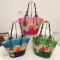 リゾートバッグ レディース ショルダーバッグ ビーチバッグ 手編み刺繍 三色スター木ビーズ リゾート風 お洒落 休日 旅行 ビーチリゾート(1ヶ)