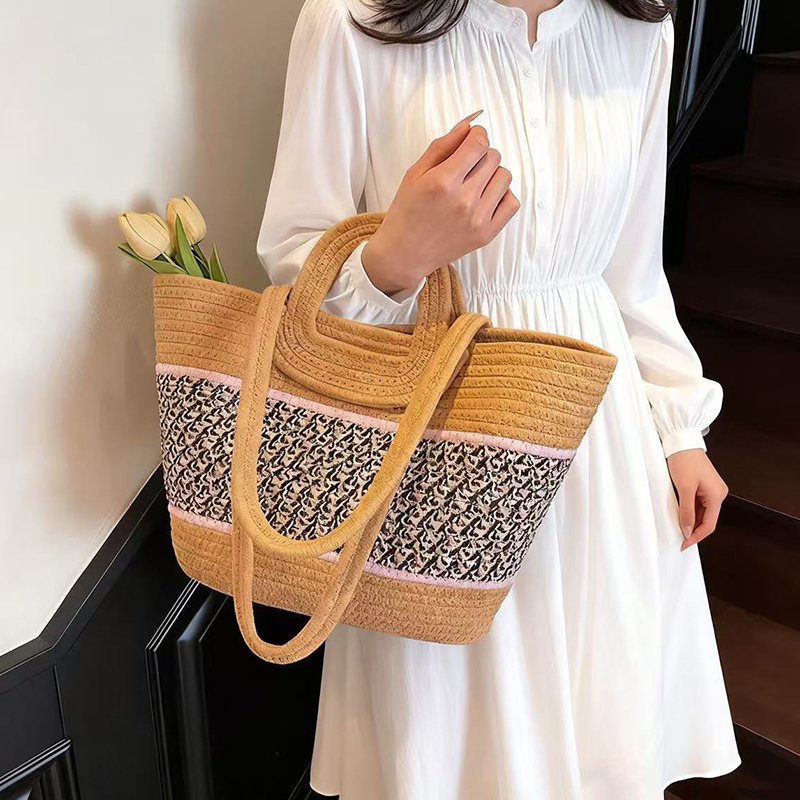 トートバッグ レディース 大容量 ショルダーバッグ 編みバッグ ファスナー付き 通勤 旅行 ビーチ お洒落 リゾート風 収納力抜群(1ヶ)