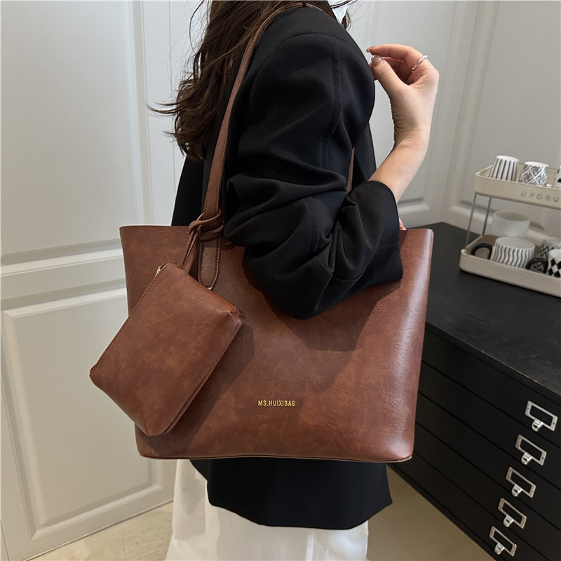 トートバッグ 2way ショルダーバッグ レディース 大容量 マット質感 PU 通勤 普段使い レトロ 便利 お洒落(1ヶ)
