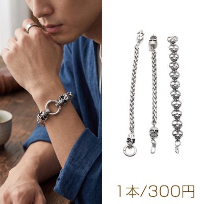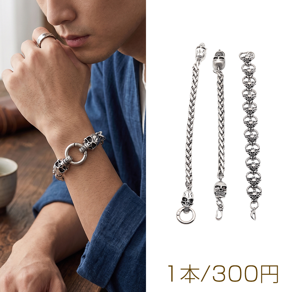 ブレスレット ヴィンテージ風 骸骨モチーフ スカル アンティーク調 メタルチェーンブレスレット 4種(1本)