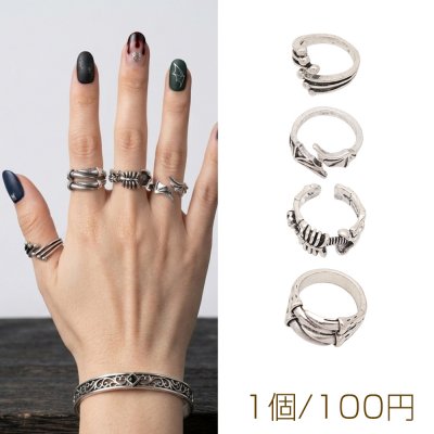 デザインリング ユニーク アニマルデザイン ヴィンテージ風 アンティークシルバー メタルリング オープンリング 全5種(1個)
