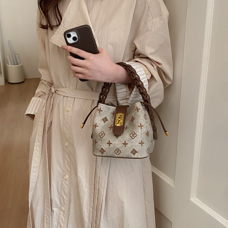 バケツバッグ レディース バケツバッグ PU素材 刺繍仕様 3way 通勤 仕事 軽奢 お洒落 プレゼント(1ヶ)