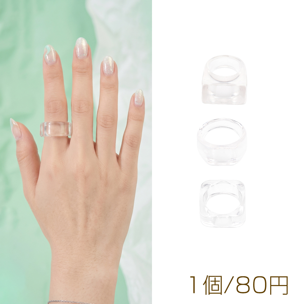 樹脂リング スクエア シンプル クリア 夏アクセ トレンド 指輪 アクリルリング デザインリング 全3種(1個)