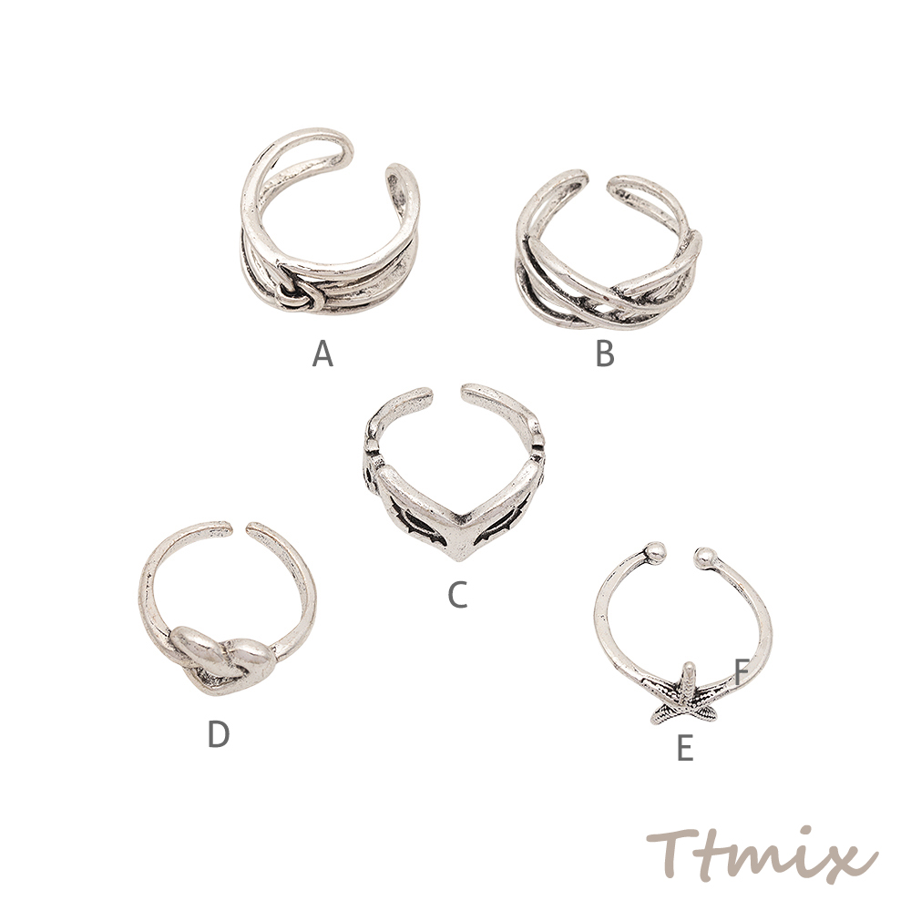 デザインリング エスニック風 ヴィンテージ風 アンティークシルバー メタルリング オープンリング 全5種(1個)