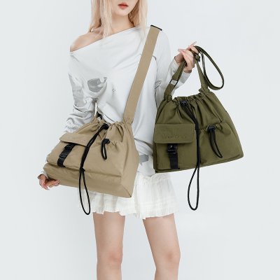 ドローストリング バッグ レディース 2way ショルダーバッグ 大容量 軽量 ナイロン 通勤 旅行 おしゃれ 便利(1ヶ)