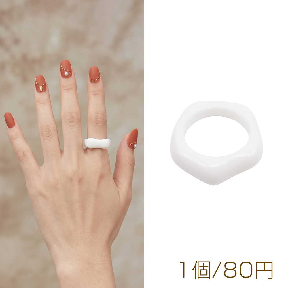 樹脂リング 五角形 幾何学 ホワイト 指輪 デザインリング 外径約25mm内径約17mm(1個)