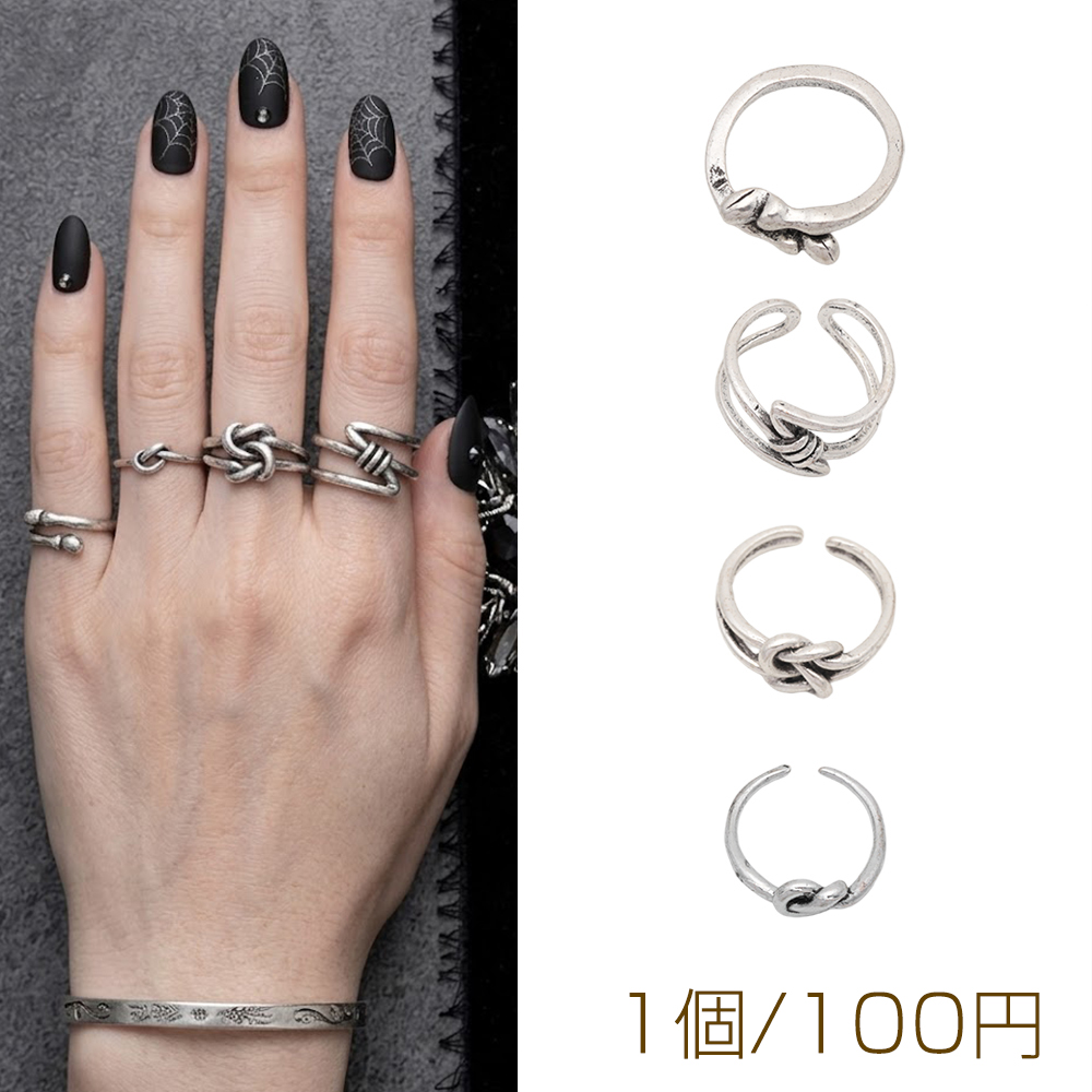 デザインリング 個性的 ヴィンテージ風 アンティークシルバー メタルリング オープンリング 全6種(1個)