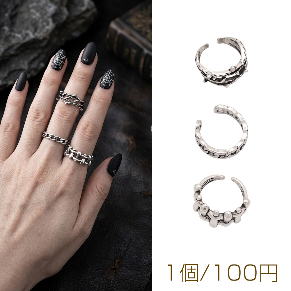 デザインリング 個性的 ヴィンテージ風 アンティークシルバー メタルリング オープンリング 全6種(1個)