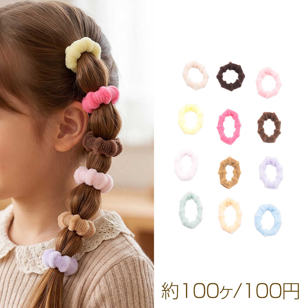 ヘアゴム お徳用 タオル地 パイル ミックスカラー カラーランダム 髪飾り 髪留め ヘアゴム ヘアアクセサリー(約100ヶ)