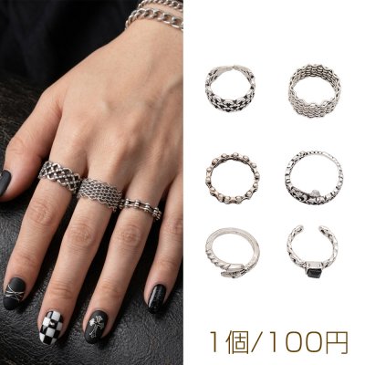 デザインリング 個性的 ヴィンテージ風 アンティークシルバー メタルリング オープンリング 全6種(1個)