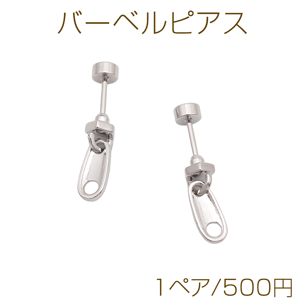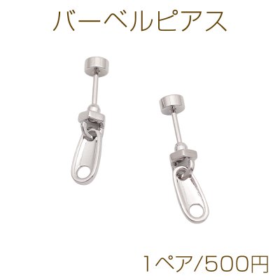 バーベルピアス ジッパーモチーフ ファスナー ステンレス製 メッキ加工 デザインピアス 約4×10mm( 1ペア)