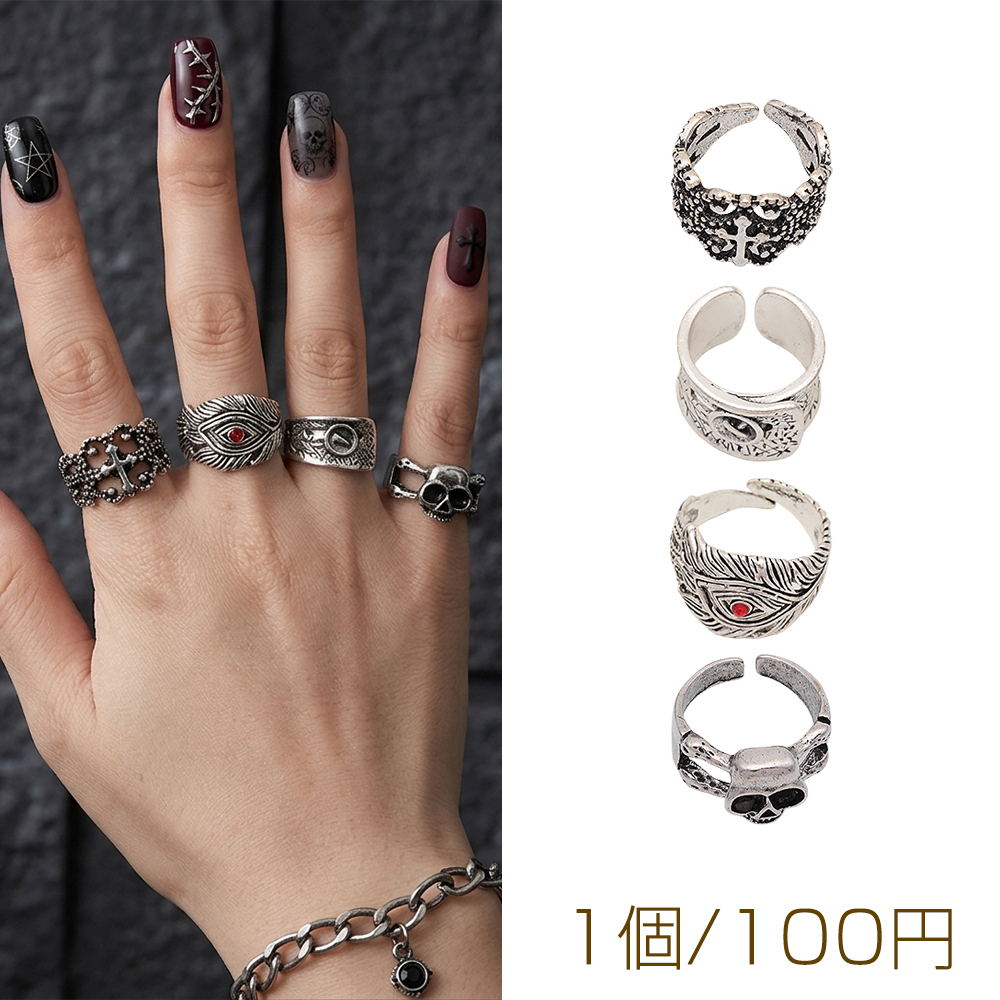 デザインリング 個性的 ヴィンテージ風 アンティークシルバー メタルリング オープンリング 全6種(1個)