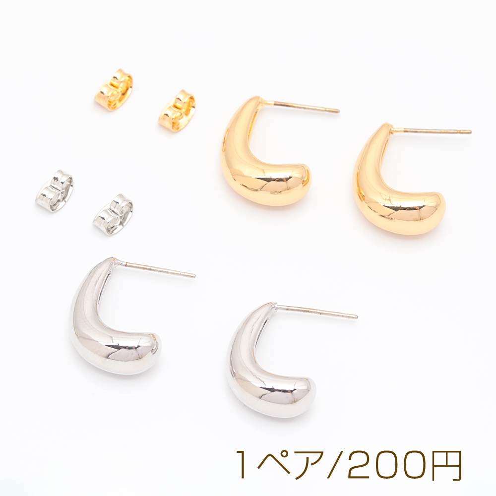 デザインピアス U字 ツイスト ウェーブ フープピアス メタルピアス 約24×38mm(1ペア)