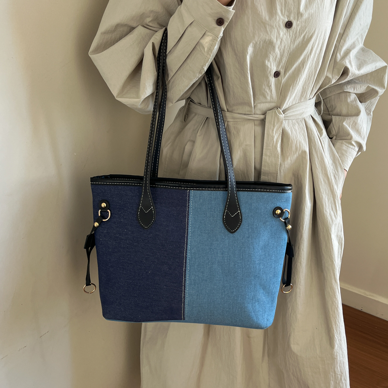 トートバッグ レディース 2wayトートバッグ デニム&高級ミックス素材 大容量 通勤 旅行 ファッションで使いやすい(1ヶ)