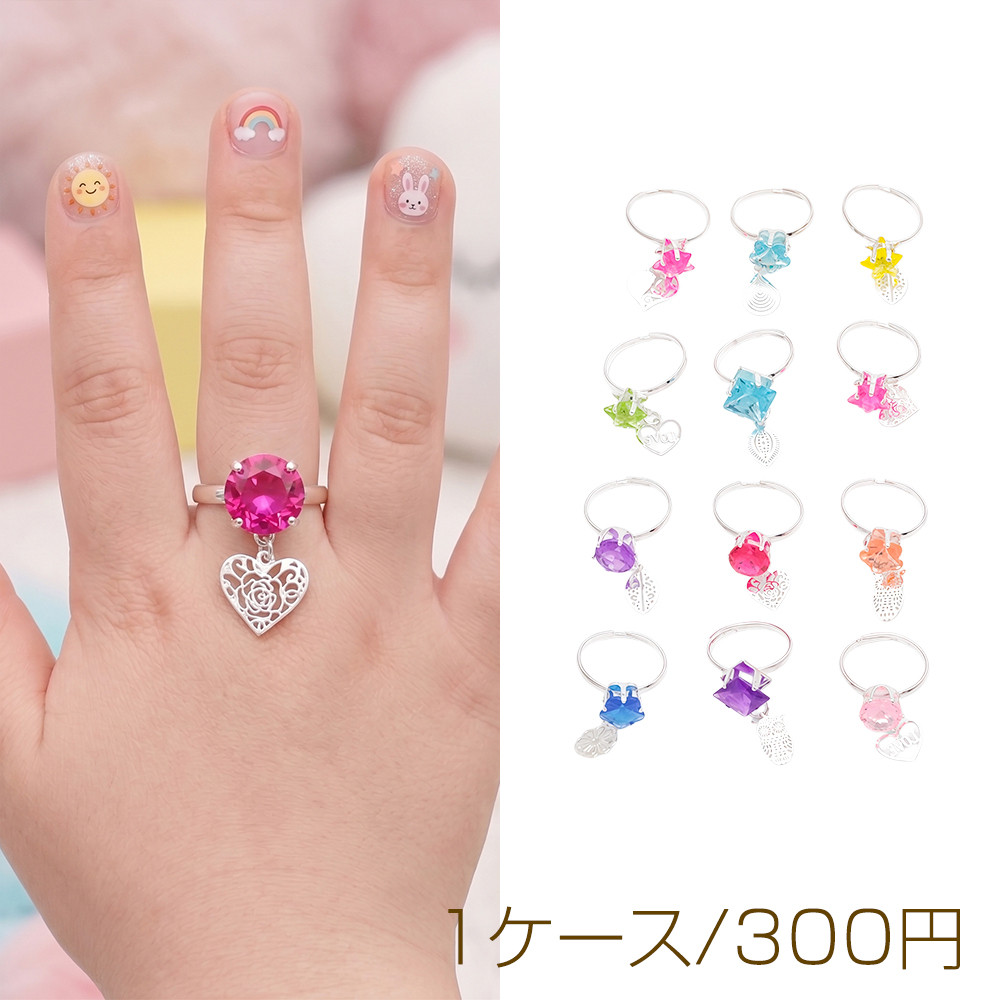 キッズ用リング ランダム クリスタル風 子ども用 おもちゃの指輪 オープンリング 外径約16mm内径約15mm(1ケース)